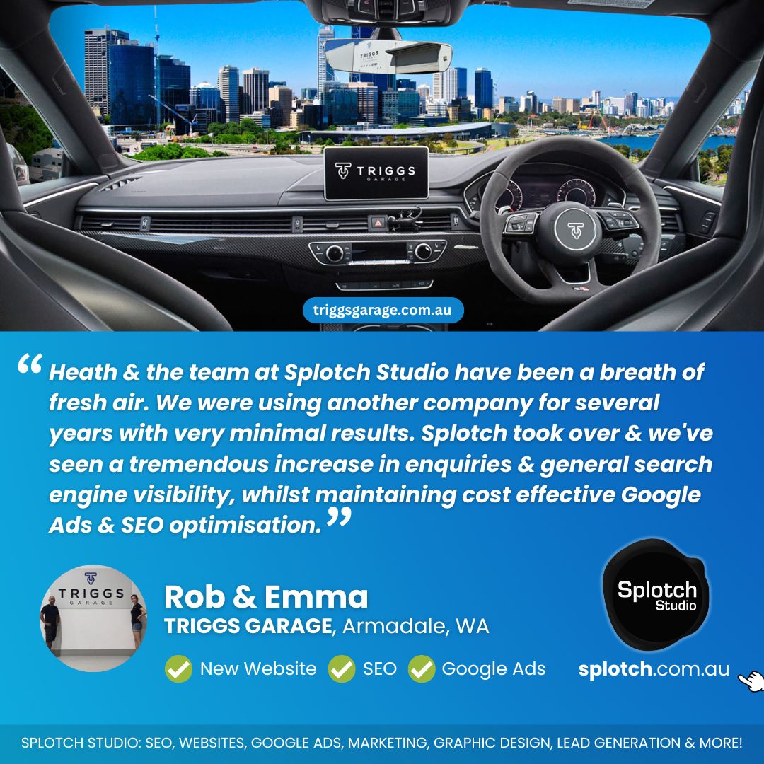 The team at Splotch Studio designed a modern, professional, and mobile-friendly website that highlights Triggs Garage’s expertise, workshop facilities, and outstanding reputation for service quality. Splotch Studio is also now managing the SEO and Google Ads for Triggs Garage and we are getting some fantastic results!